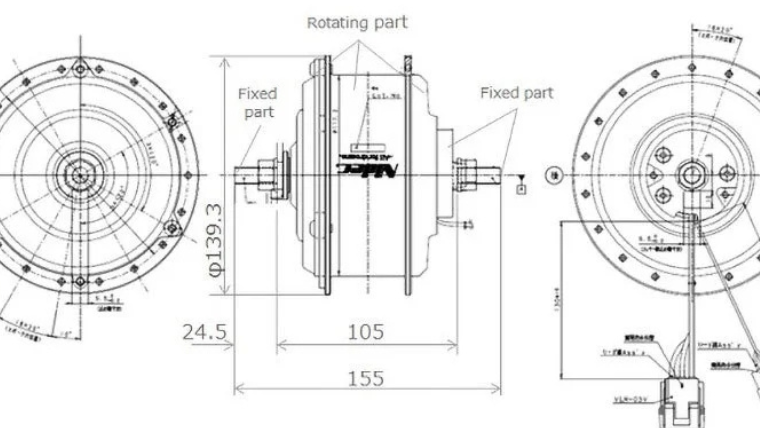 インナーロータタイプのブラシレスモータで、長寿命、高出力を実現。電動アシスト自転車に使用されているインホイールモータです。減速機付きで、低コギング、高トルクを備えたモータです。