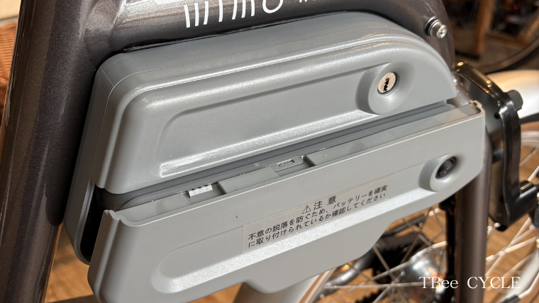 わずか1.3kgの小型バッテリーを車体中央のボックスに収納する設計です。見た目がスマートなだけでなく、コネクト部分がカバーの内部に隠れているため、盗難や雨濡れのリスクも軽減されます。